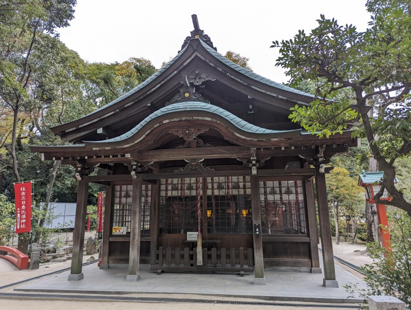また、住吉神社は「日本三大住吉」の一つに数えられることもあり、住吉信仰の中核的存在としての格式を今に伝えています。境内は約8,107坪と広大で、相撲殿や天満宮なども擁し、歴史・信仰・文化が重層的に息づく空間となっています。