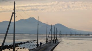 長部田海床路は二階堂CM「消えた足跡」篇のロケ地として知られる熊本県宇土市の絶景スポットです。干潮時間や潮見表の確認方法、駐車場情報、住吉海岸公園のジンベエ像まで詳しく解説します。
